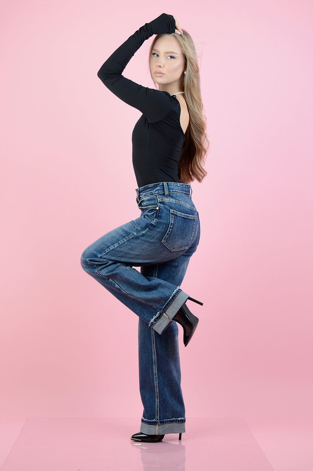 Никога не подценявай силата на добрия деним! Тези дънки с висока талия и права кройка са must-have за модерната визия. Подгънатият крачол придава непринуден, но изключително стилен вид. Универсален модел - идеален както за ежедневието, така и за по-стилни визии.