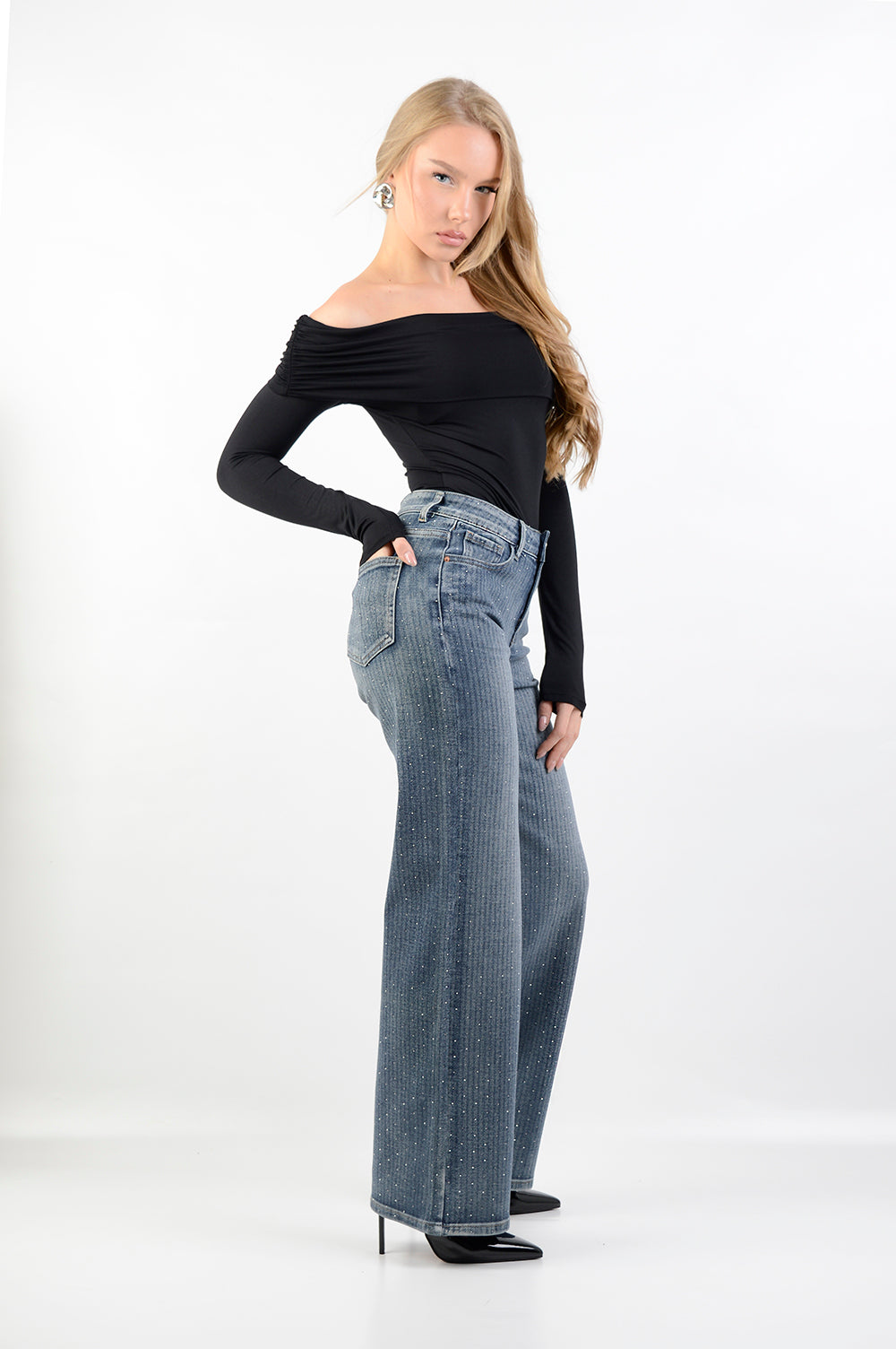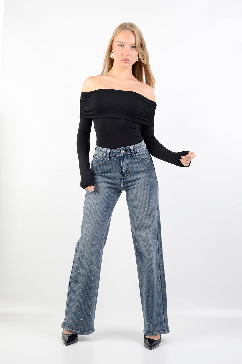 Тези дънки са модерния акцент, коъто ще издигне визията ти на следващо ниво. Комбинацията от класическа кройка и фини бляскави детайли ги прави идеални както за ежедневието, така и за специални излизания.