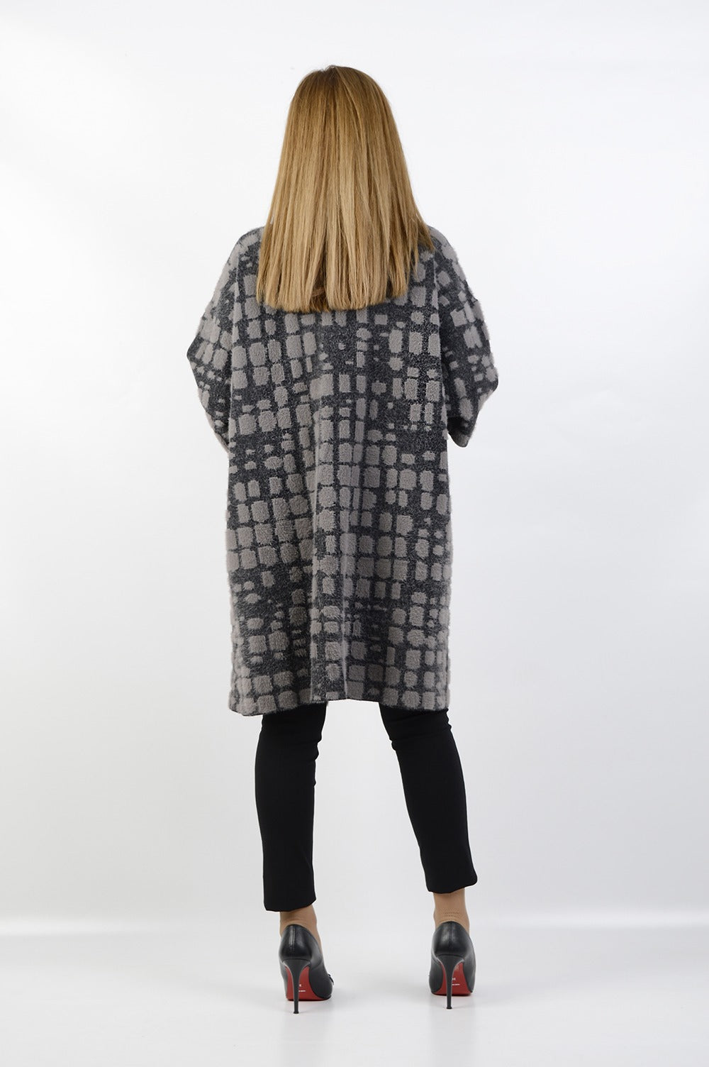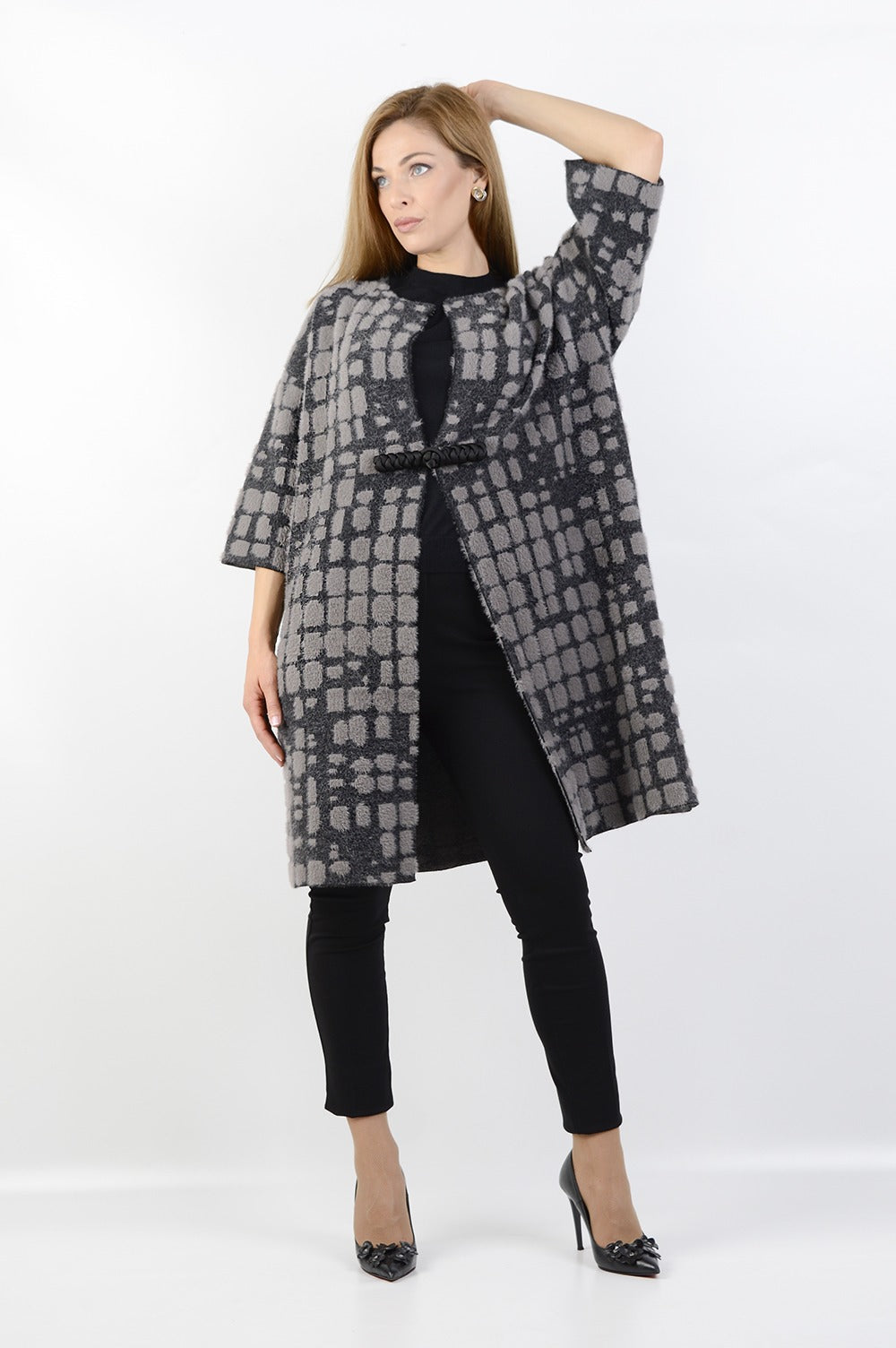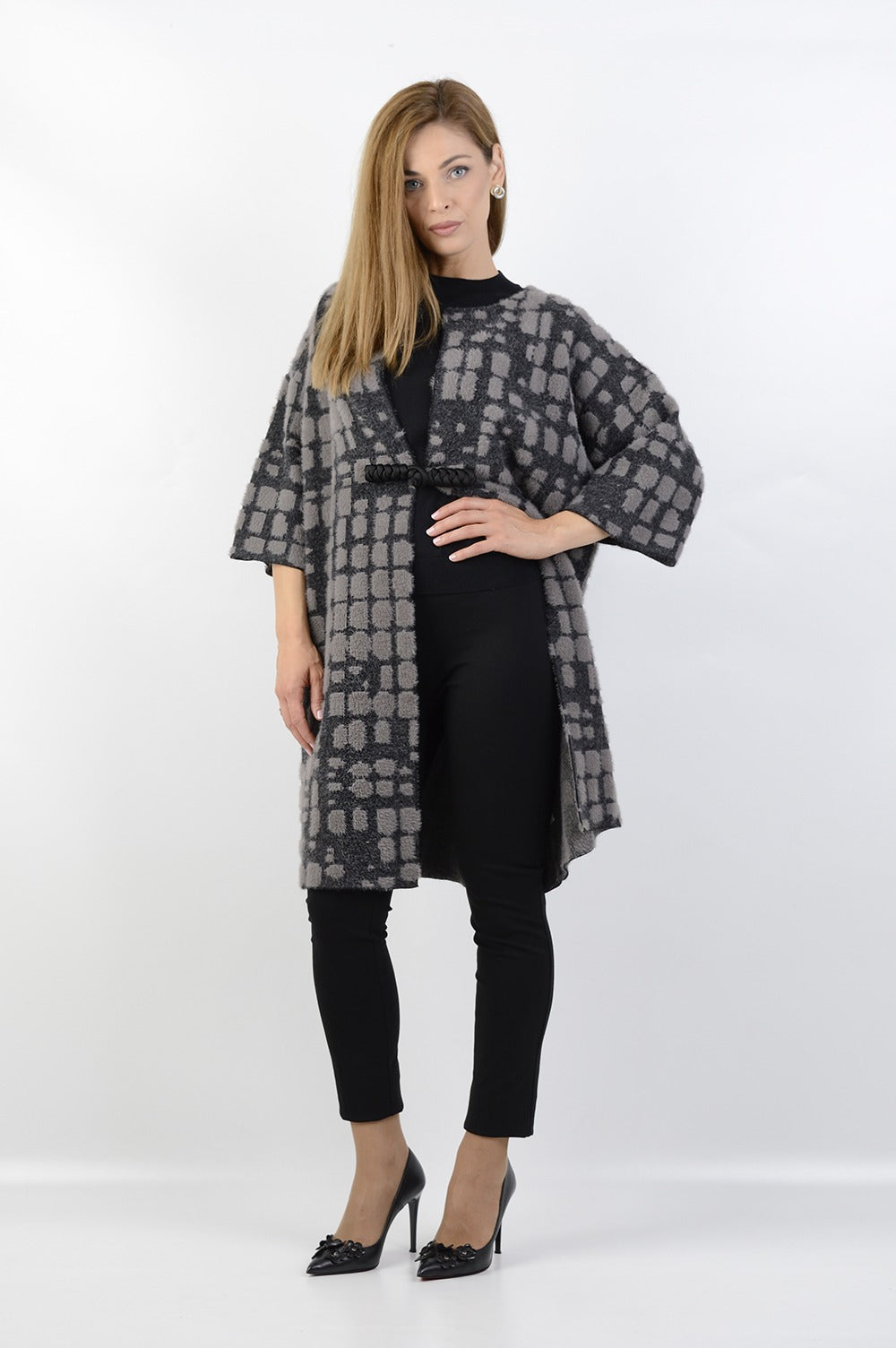 ...стилен и практичен модел, който съчетава лекотата на жилет с елегантност на мантото...изработено от топла и мека материя, за да осигури комфорт през хладните дни..дизайнът е с дължина около коляното, прав силует и 3/4 ръкав, което го прави подходящо за различни фигури...