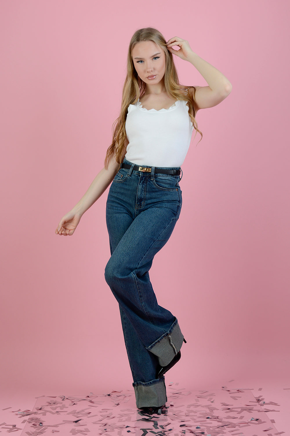 Класически дънки с права леко разкроена линия, която оформя силуета и се комбинира лесно с всякакви топове и сака. Високата талия подчертава фигурата. Идеални както за ежедневни визии, така и за по-стилен и градски look.