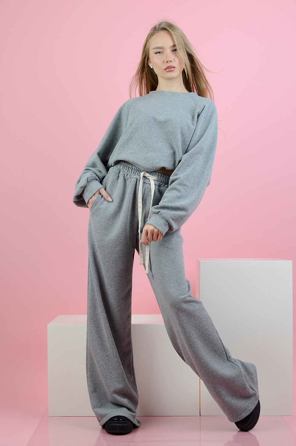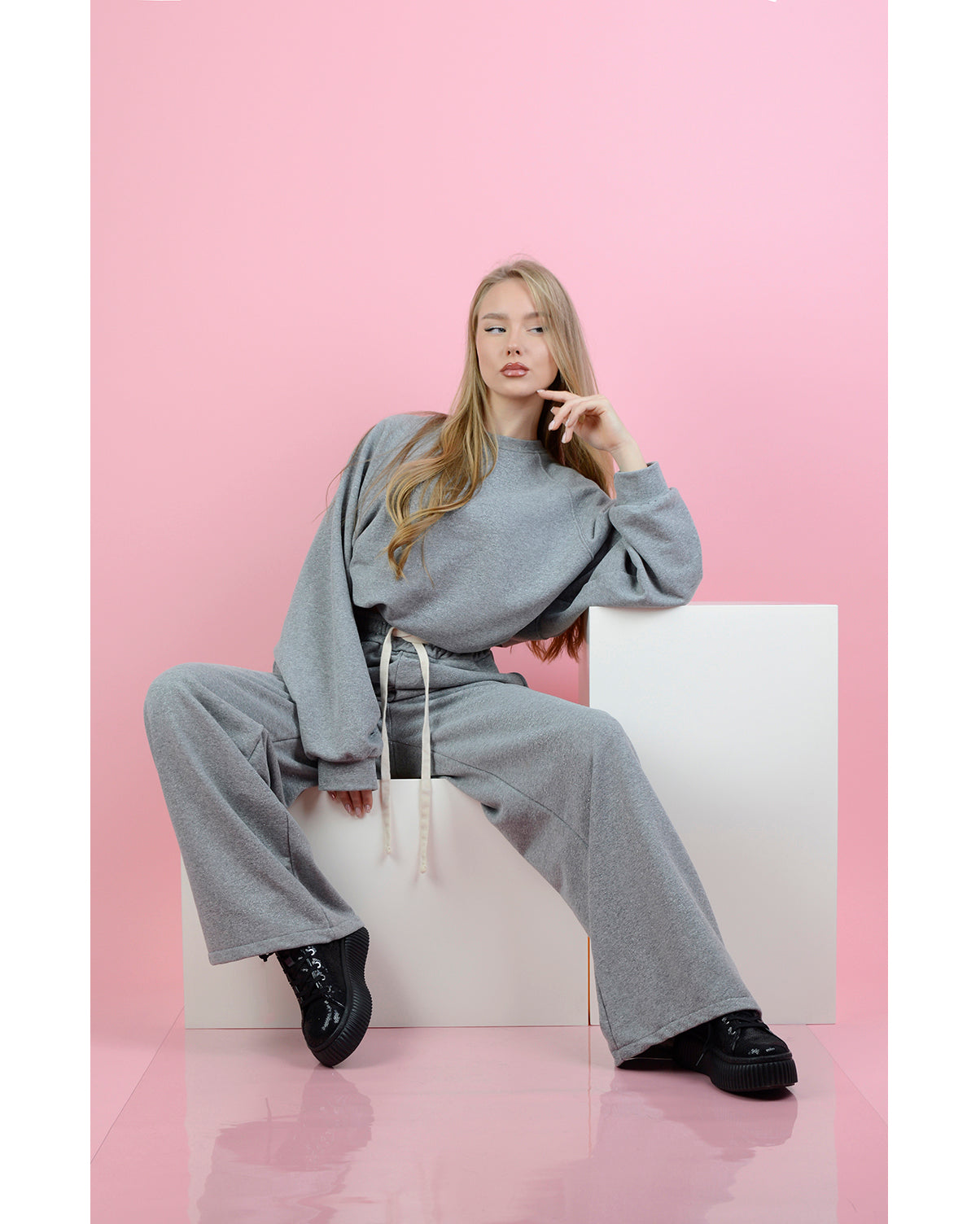 Комфорт и стил в едно. Този комплект е създаден за момичета, които обичат небрежната елегантност. Свободната кройка и меката материя го прави идеален както за ежедневието , така и за градски разходки.