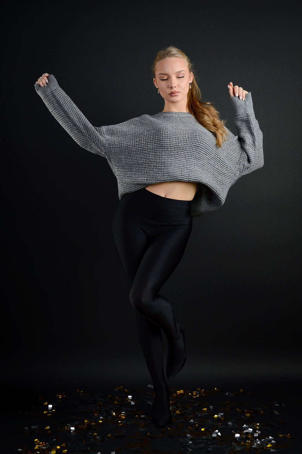 Комфорт, модерен силует. Този сив пуловер е изработен от мека плетка с леко ажурна структура , която придава ефирност и стил. Свободната кройка пада красиво по тялото и създава усъвършенстване за топлина и комфорт. Подходящ е както за ежедневни визии, така и за изчистени модерни комбинации.